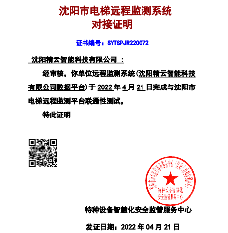 電梯物聯(lián)網(wǎng)設(shè)備通過沈陽市電梯遠程監(jiān)測系統(tǒng)驗證